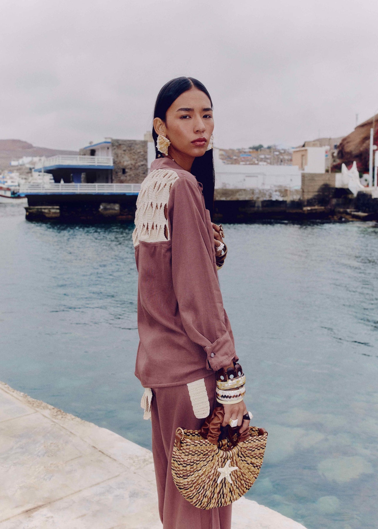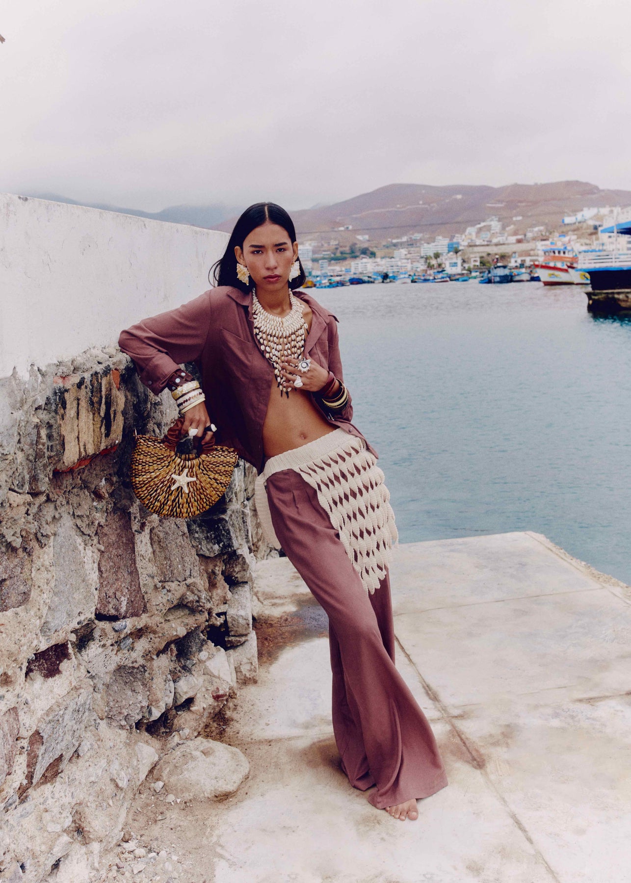 Knitted cotton details reinterpret marine textures.